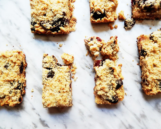 Mira la receta en: http://brunisboulangerie.blogspot.com.es/2016/07/barras-de-cerezas-con-crumble.html#.V5tsnfmLS70