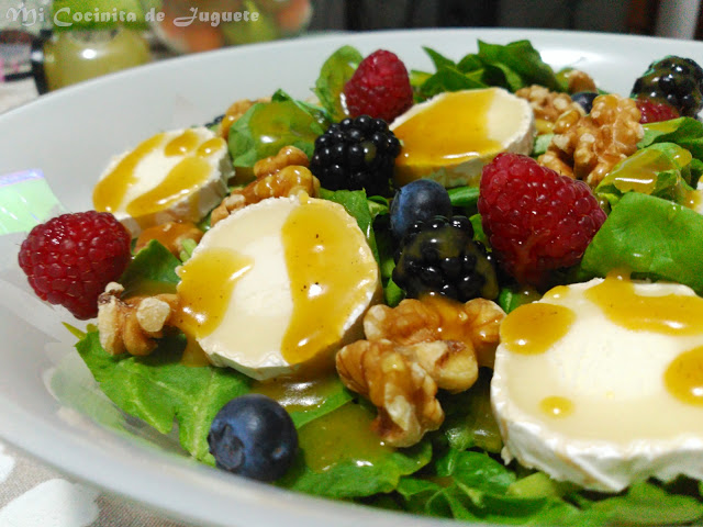 Mira la receta en: http://micocinitadejuguete.blogspot.com.es/2016/08/ensalada-de-espinacas-con-queso-de-cabra-y-frutos-rojos.html