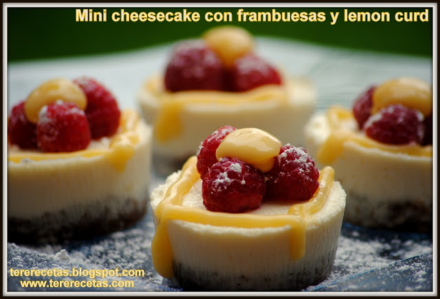 Mira la receta en: http://www.tererecetas.com/2013/05/minis-cheesecakes-con-frambuesas-y.html