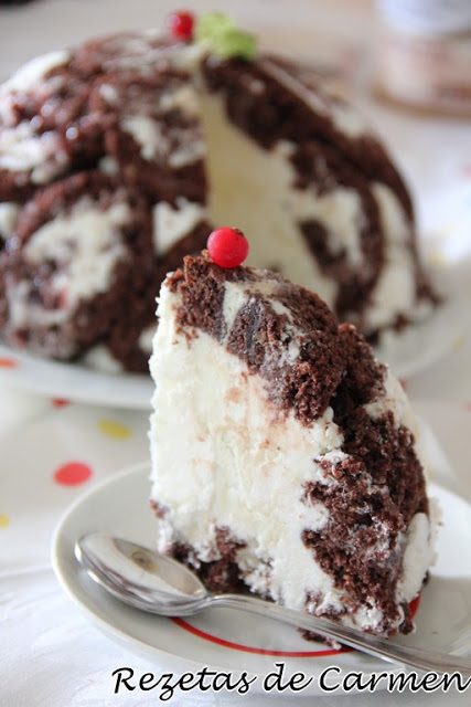 Mira la receta en:http://www.rezetasdecarmen.com/2017/02/tarta-iglu-de-doble-chocolate-valor.html