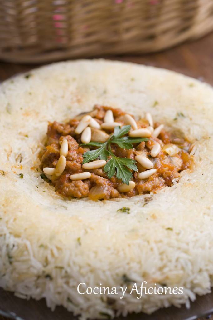Mira la receta en:http://www.cocinayaficiones.com/2017/09/corona-de-arroz-con-ragu-de-carne-receta-paso-a-paso/