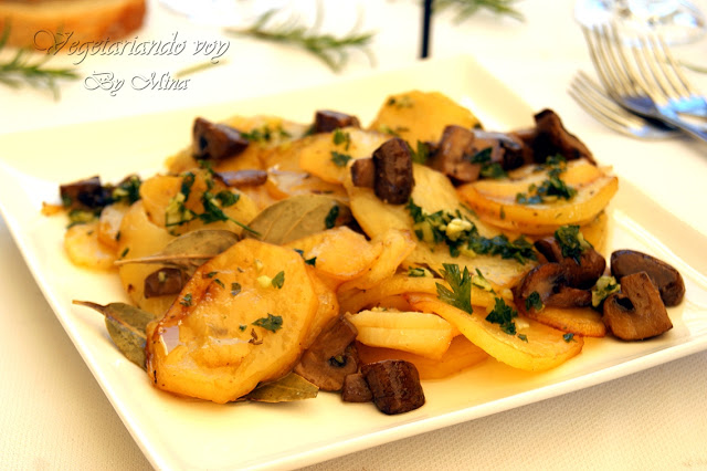 Mira la receta en:http://vegetariandovoy.blogspot.com.es/2016/09/patatas-ahogadas-con-champinones.html