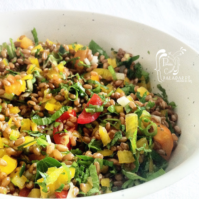 Mira la receta en: http://saboresdenati.blogspot.com.es/2016/10/tabbouleh-tabule-de-trigo-cocina-arabe.html