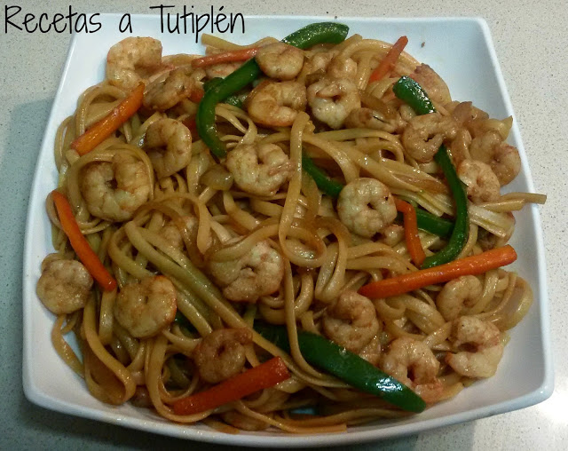 Mira la receta en: http://recetasvioletadelpozo.blogspot.com.es/2017/04/tallarines-con-gambas-al-estilo-chino.html