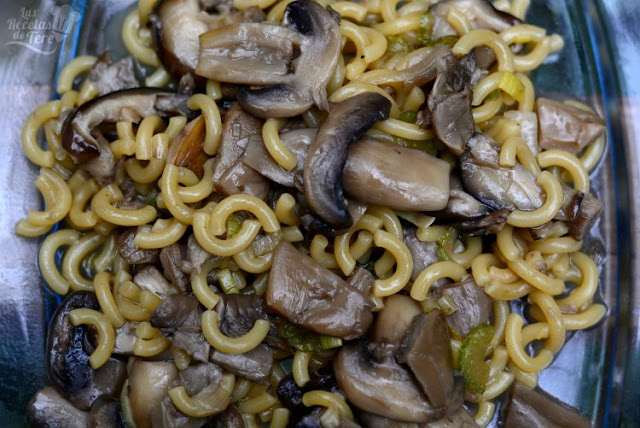 Mira la receta en:http://www.tererecetas.com/2018/06/fideua-de-setas-y-champinones.html