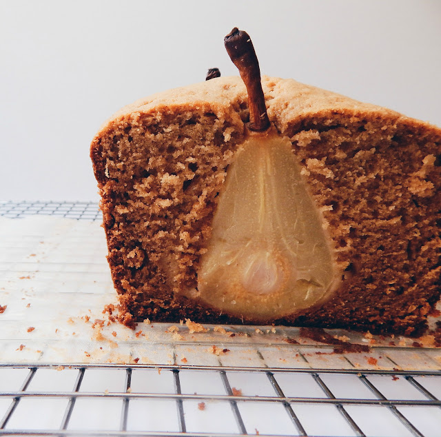 Mira la receta en: http://brunisboulangerie.blogspot.com.es/2016/11/panque-de-jengibre-con-peras-poche.html#.WCZKiC3hC70