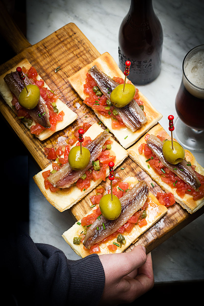 Mira la receta en:http://www.yerbabuenaenlacocina.com/2017/04/cocas-con-sardinas-ahumadas-tartar-de.html