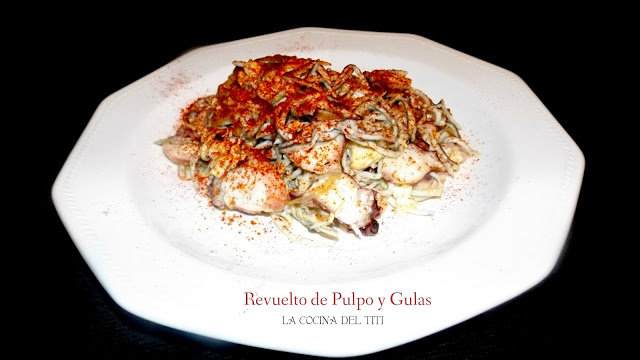 Mira la receta en: http://lacocinadeltiti.blogspot.com.es/2016/07/revuelto-de-pulpo-y-gulas.html